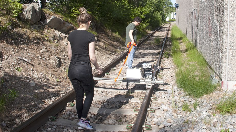 Irida Shallari från forskningscentret STC vid Mittuniversitetet och Anders Olsson från Pandrol.