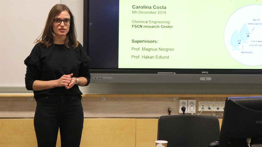 Carolina works in the research group of Surface and colloid engineering with professor Magnus Norgren and Håkan Edlund as supervisors at FSCN research centre. Here are some photos from the seminar.