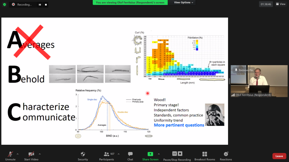 On June 4, 2021 Olof Ferritsius presented and defended his Doctoral Thesis in Chemical Engineering. The title is "Beyond averages – some aspects of how to describe a heterogeneous material, mechanical pulp, on particle level"