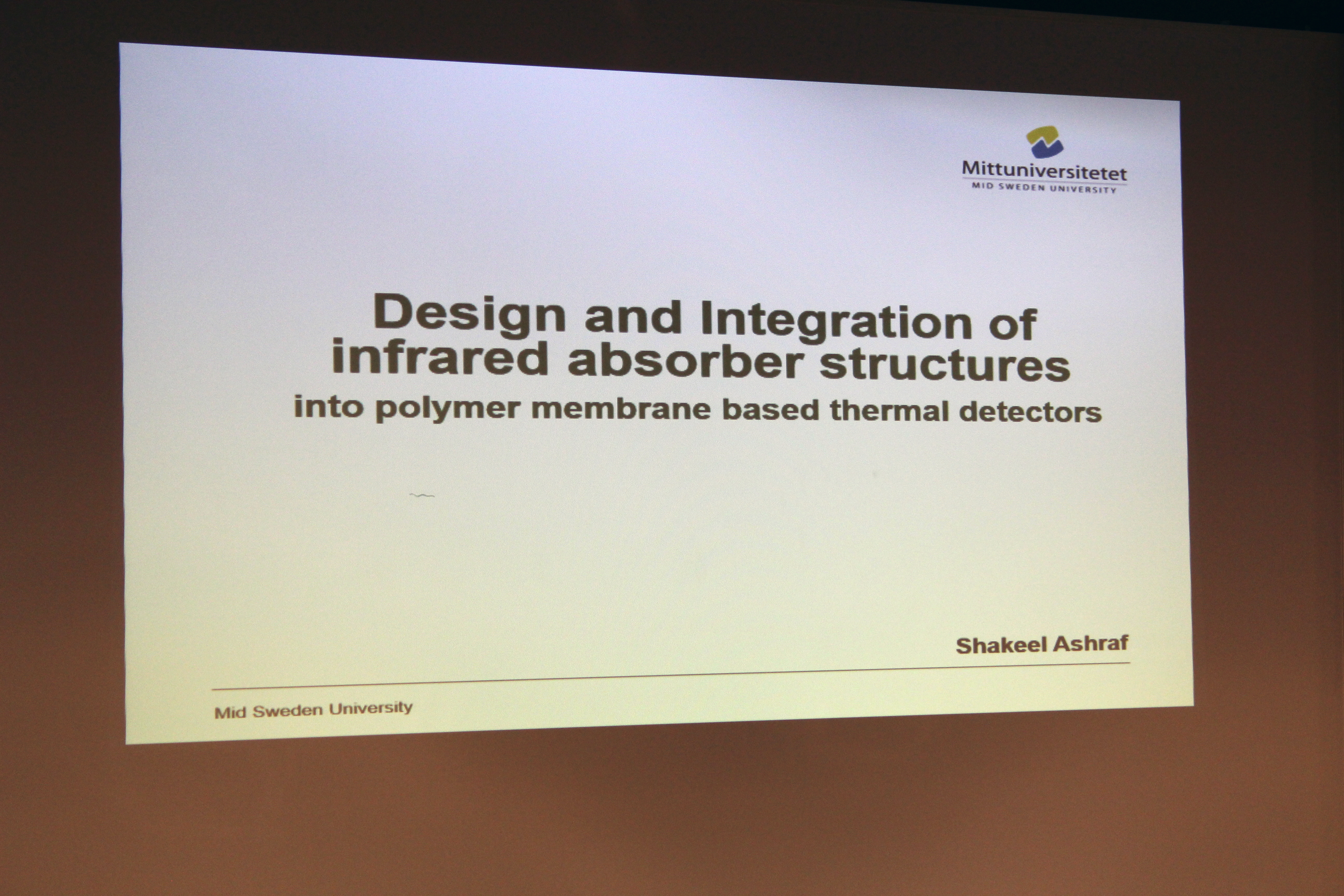 Thursday, September 17, 2015, it was time for the PhD-Student Shakeel Ashraf to present his licentiate thesis "Design and Integration of Infrared Absorber Structures into Polymer Membranes based Thermal Detectors".