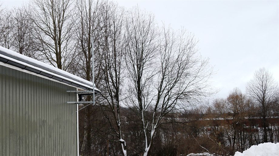 En av snödjupsmätarna som har moterats upp vid Mittuniversitetets campus.