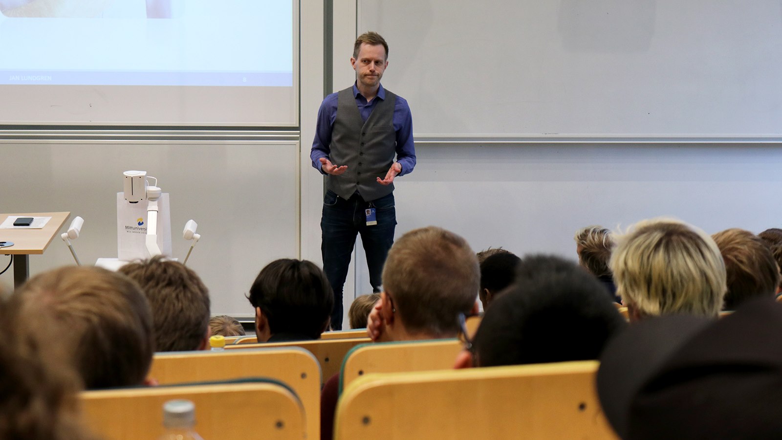 Today, several hundred high school students visited Mid Sweden University to attend a science day. STC researchers Krister Hammarling, Jan Thim, Benny Thörnberg and Xiaotian Li presented what a researcher do and held inspiring lectures.