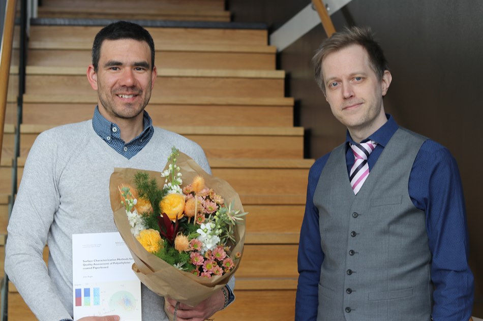 On April 27, PhD student Javier Brugés successfully defended his licentiate thesis "Surface characterization methods for quality assessment of polyethylene-coated paperboard". Congratulations Javier!