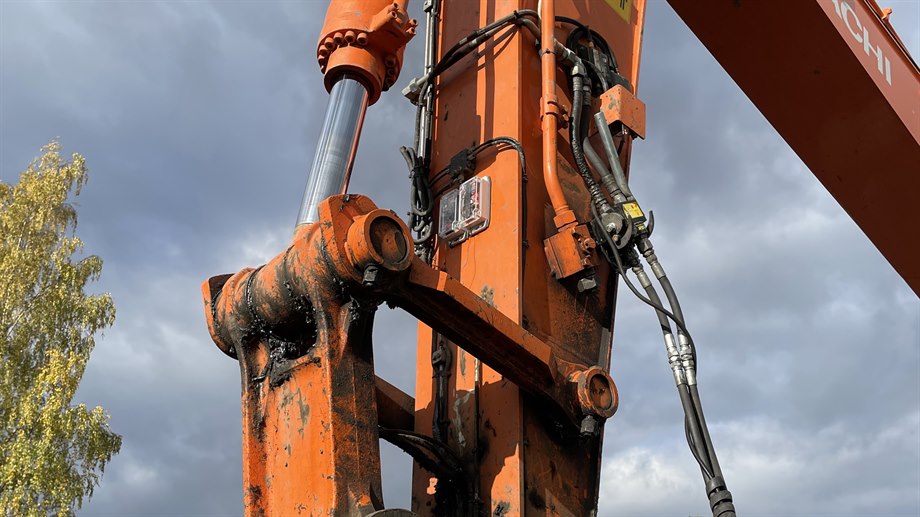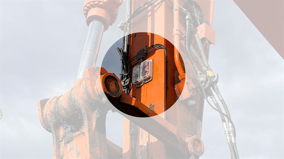 Sensorn är placerad på grävmaskinens arm för att fånga upp rörelseaktivitet.