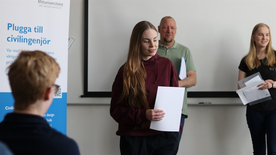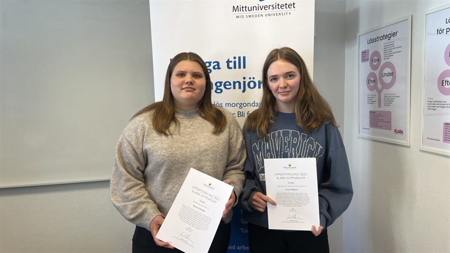 Totalt deltog tre gymnasieskolor från Sundsvall i Mittuniversitetets stora uppsatstävling för årskurs två på teknik- och naturprogrammen: Klara Teoretiska Gymnasium, Skvaderns gymnasieskola och Sundsvalls gymnasium Västermalm. Från varje gymnasieskola har 3-4 vinnare utsetts och hyllats vid prisutdelningar under de senaste veckorna.