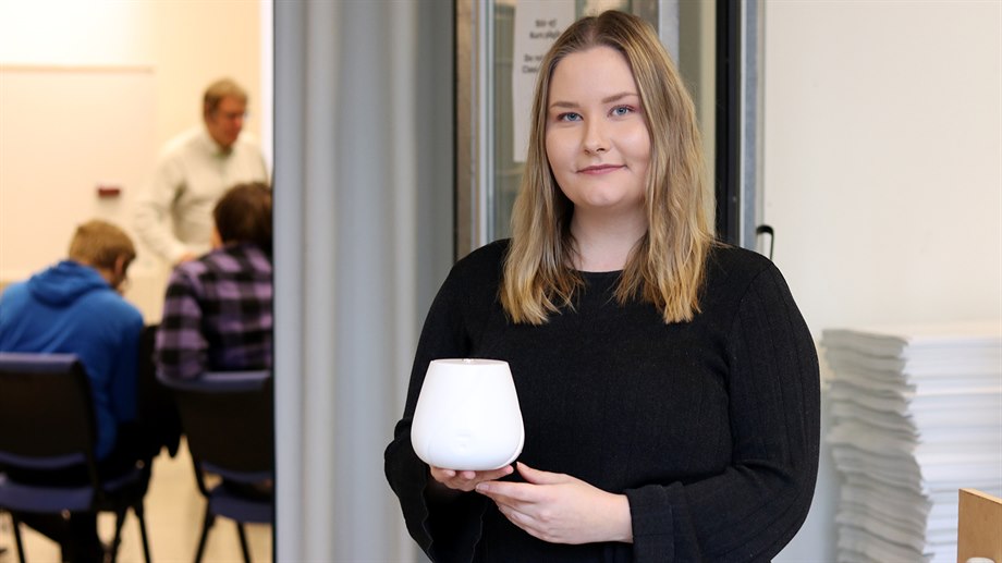 Victoria Wistemar läser tredje året på Industridesignprogrammet och under höstterminen fick klassen i uppdrag att ta fram en ny design av en radonsensor. 15 studenter arbetade med utmaningen under sex veckor och sedan var det dags att presentera resultaten för uppdragsgivaren, MidDec Scandinavia.