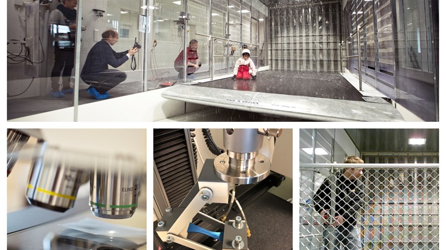 Under utbildningen får du i vissa kurser och under examensarbetet även möjlighet att arbeta med laborationer och projektuppgifter i forskningsmiljöns tekniskt avancerade labb. Här finns bland annat en världsunik vindtunnel, labb för materialprovning och additiv tillverkning.
